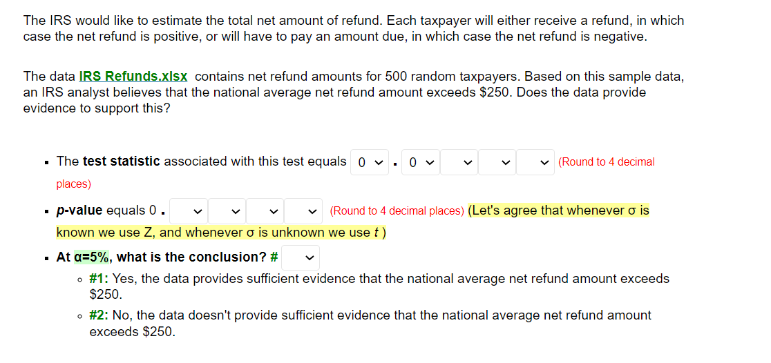 Solved The Irs Would Like To Estimate The Total Net Amount Chegg Com